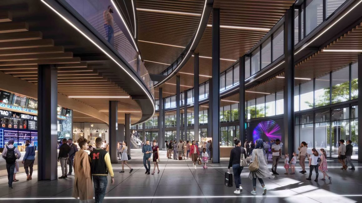 The cascading volume of the Lagos Arena is a central design element that creates expansive terraces on multiple levels. These terraces are intended for social activities and offer panoramic views of the nearby river and ocean, integrating the natural surroundings into the venue’s experience . The design draws inspiration from its waterfront location, aiming to harmonize the structure with its environment.